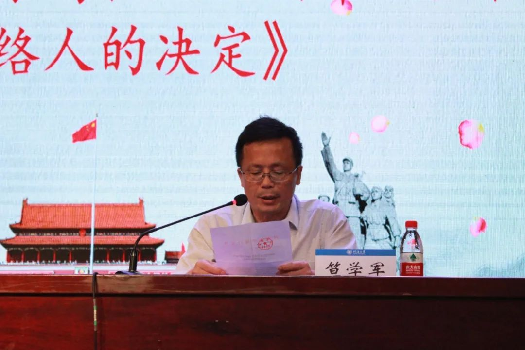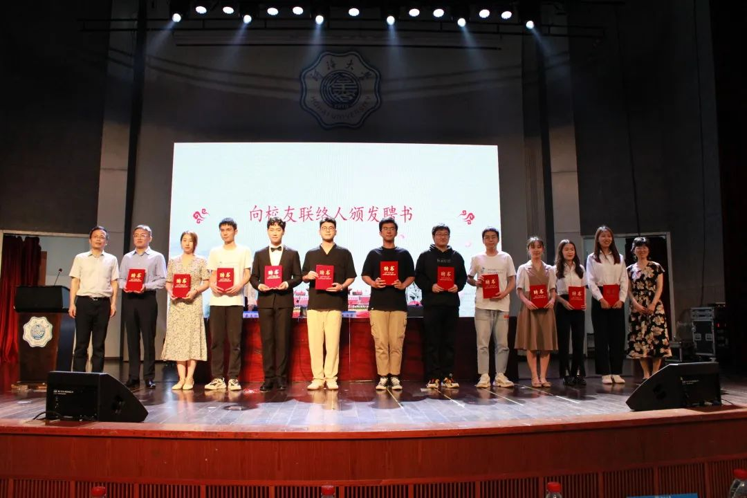 笪书记宣读《杏色 关于聘任2021届毕业生校友联络人的决定》,并为校友联络人们颁发聘书。校友,是学校改革发展的促进者和见证人,是学校教育工作的监督者和支持者。希望各位校友联络人不负母校重托,珍视母校形象,铭记校训精神,凝聚校友资源,为母校的长远发展贡献力量。