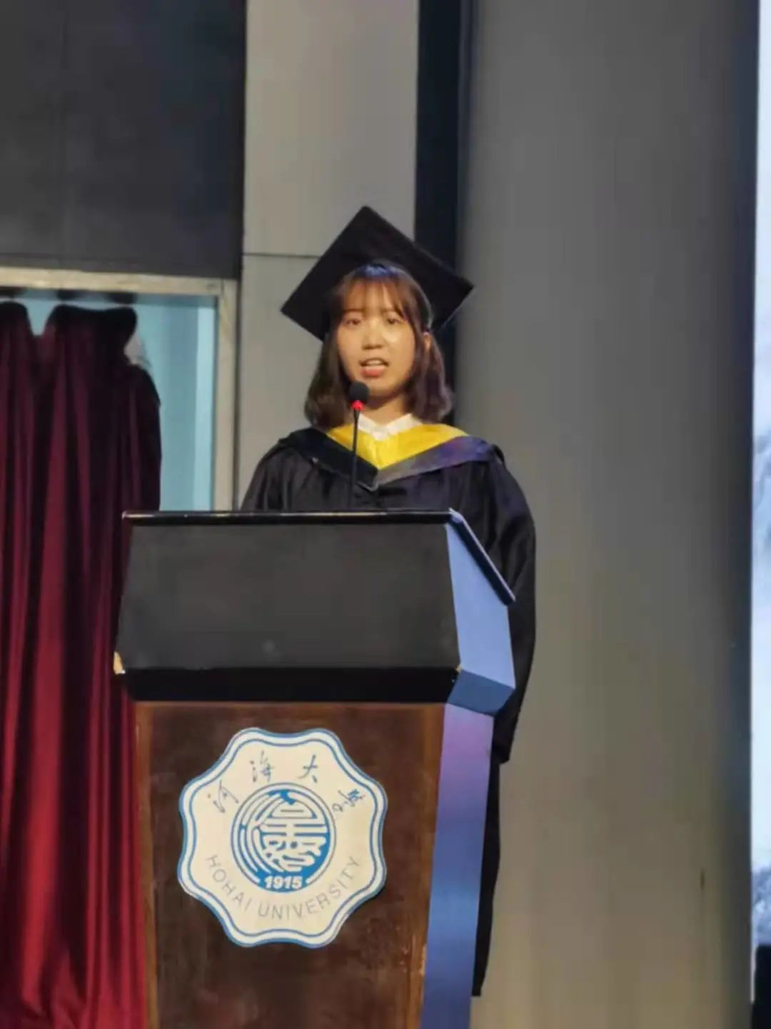 经历了大学这一段美好而又充实的时光,毕业生们也有话要说。2021届研究生毕业生代表温昕和2021届本科毕业生代表贾丽晴发表了他们的毕业感言,两位同学表示了对老师、对学校衷心的感谢和深深的敬意。河海是青春开始的地方,也是梦想开始的地方。现在,每个同学都有着不同的方向和目标,有人选择国内深造,有人选择出国实现梦想,有人进入国企描绘人生蓝图,有人即将奋战在生态环境保护第一线。希望同学们能够带着一颗赤子之心,勇敢拼搏,让世人看到河海的风范。
