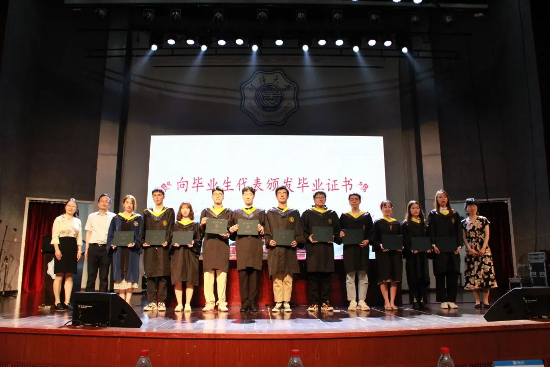最后,优秀毕业生代表上台,由院领导们向他们颁发毕业证书,代表着2021届环境人的大学生涯正式落幕,杏色 2021届毕业典礼圆满结束。