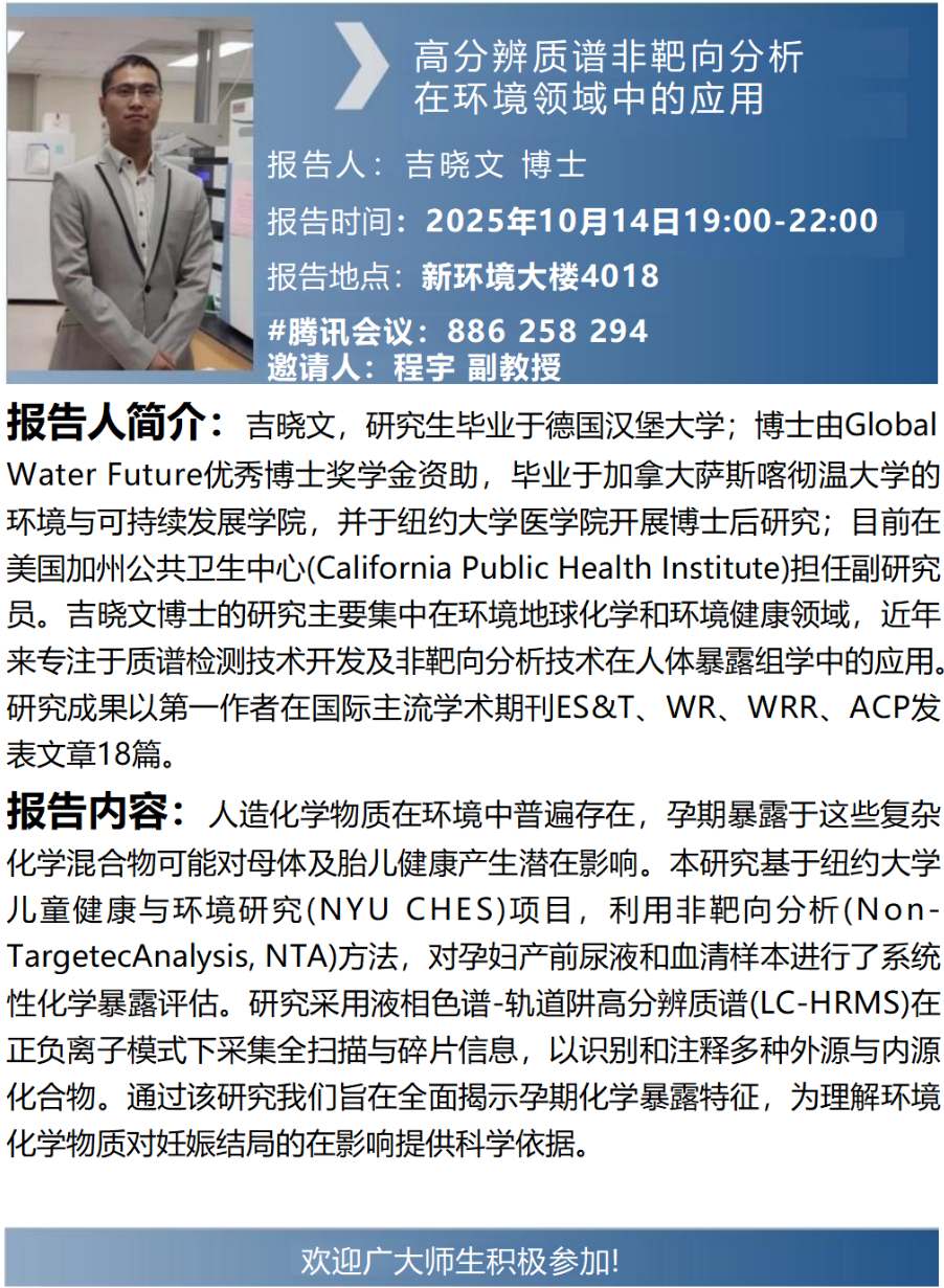 杏色 学术报告:高分辨质谱非靶向分析在环境领域中的应用