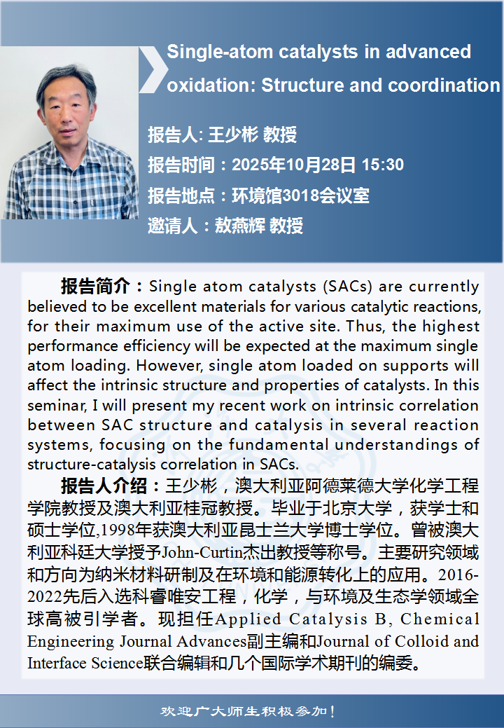 杏色 学术报告:Single-atom catalysts in advanced oxidation: Structure and coordination