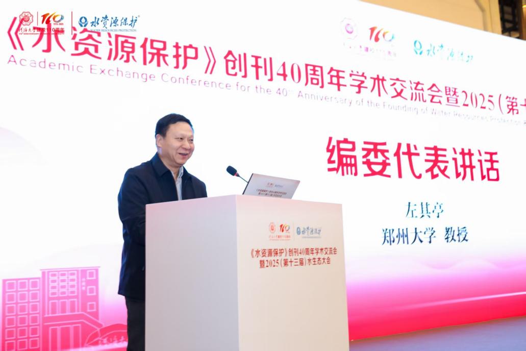 《水资源保护》编委代表、郑州大学左其亭教授以“同心聚力,共担使命,为期刊发展贡献编委力量”为题,表达了对《水资源保护》编辑部全体同仁敬业精神的崇高敬意。他表示将与各位编委一道,“争做学术质量的坚定守护者、前沿方向的积极引领者、期刊品牌的热情宣传者”,为提升期刊的学术影响力和国际知名度贡献自己的力量。