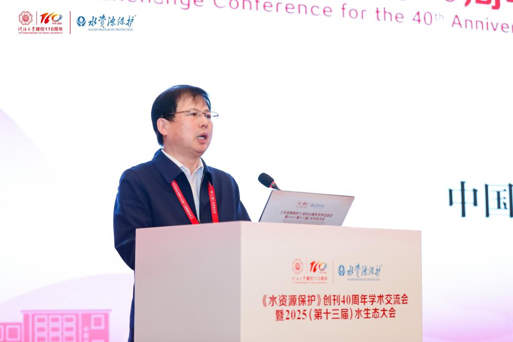 中国水利学会副理事长兼秘书长段虹在致辞中首先对《水资源保护》创刊四十周年致以热烈祝贺,并高度肯定了期刊四十年来在引领学术前沿、服务国家战略等方面取得的卓越成就。他赞誉《水资源保护》已成为我国水资源保护领域不可或缺的学术交流高地,并殷切期望期刊能以四十周年为新起点,坚持守正创新,勇攀世界一流科技期刊高峰。同时,他对在国家大力推进江河治理、生态文明和国家水网建设等重要战略背景下召开本次水生态大会的重要意义给予了充分肯定,预祝大会取得丰硕成果。