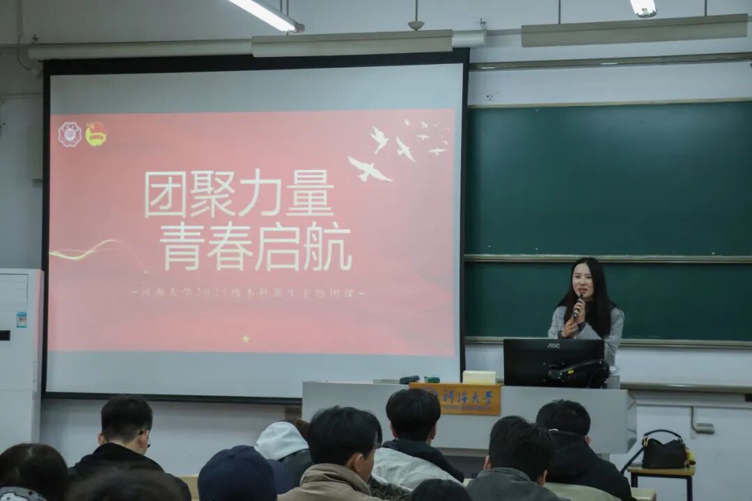 姜帆老师首先带领同学们回溯了共青团百余年来听党指挥、跟党奋斗的壮阔历程。她特别结合“河海记忆”,讲述了张闻天、沈泽民等杰出校友传播马克思主义、投身革命洪流的动人故事 。她勉励在座团员,要从红色足迹中汲取信仰力量,不仅要读懂历史宏卷,更要赓续一代代河海人爱国报国的红色基因。