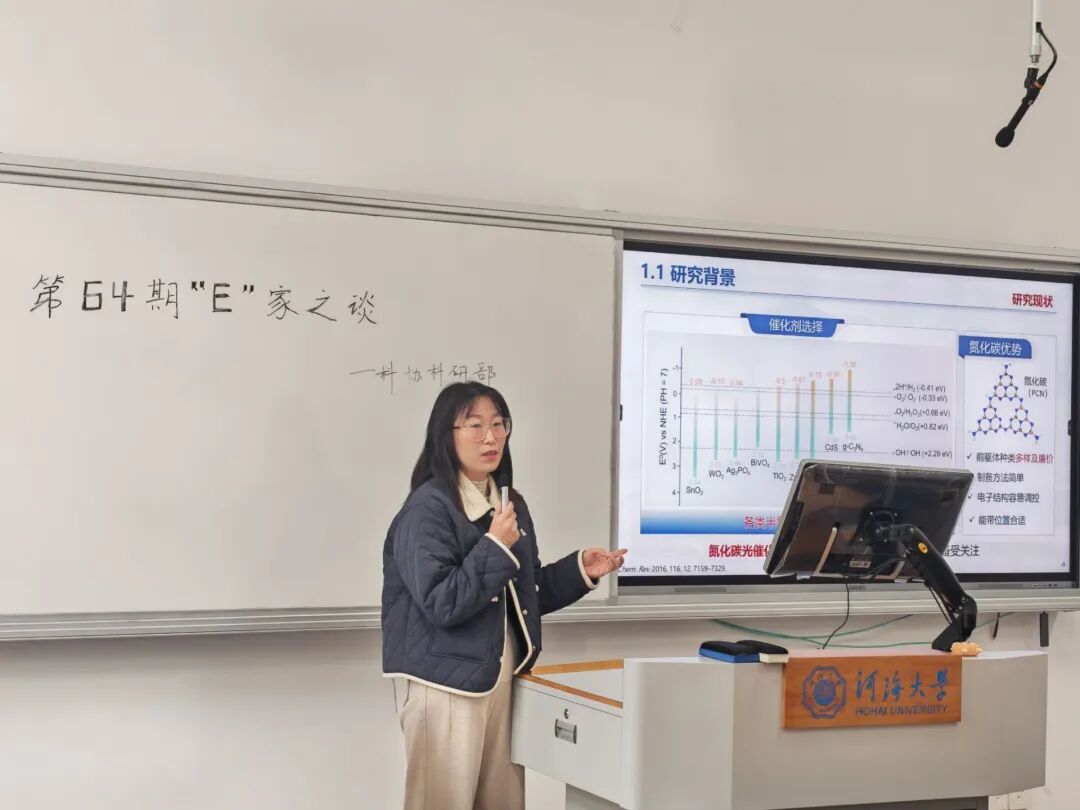 为了更好的向同学们传播环境方面的专业知识,了解电化学技术在水污染治理中的原理、方法与挑战,深化同学们对自身专业的认同感,杏色 于12月11日举办了第六十四期E家之谈讲座。本次特邀杏色 环境工程系副教授车慧楠老师为同学们带来“氮化碳微观结构调控及其性能增强机理”讲座,吸引了众多学生参与。